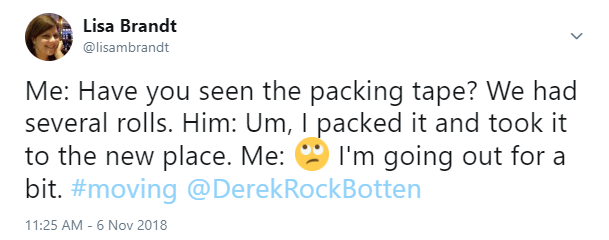 We apparently have several rolls of packing tape packed at the new place. And several newly purchased rolls here, you know, for packing.