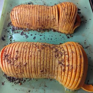 I wrote about Carleigh last year when her latest cookbook came out. It was an instant New York Times best seller. If you want to eat more plants, I highly recommend joining the millions who follow her on social media. I don’t belong to her paid community and I still get loads of ideas and wonderful, new recipes totally free. Check out my hasselback butternut squash. It was the foundation of several meals and I can’t wait to make it again.