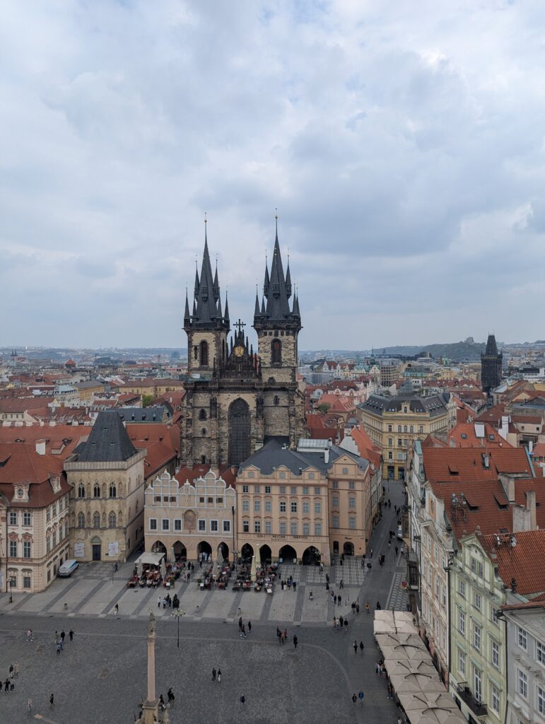 Prague’s astronomical clock tracks the time as well as the movements of celestial bodies. It was first installed in 1410 and it’s the oldest astronomical clock in the world that’s still in operation. Attached to the old town hall, you can go up inside and view the city, so we did!